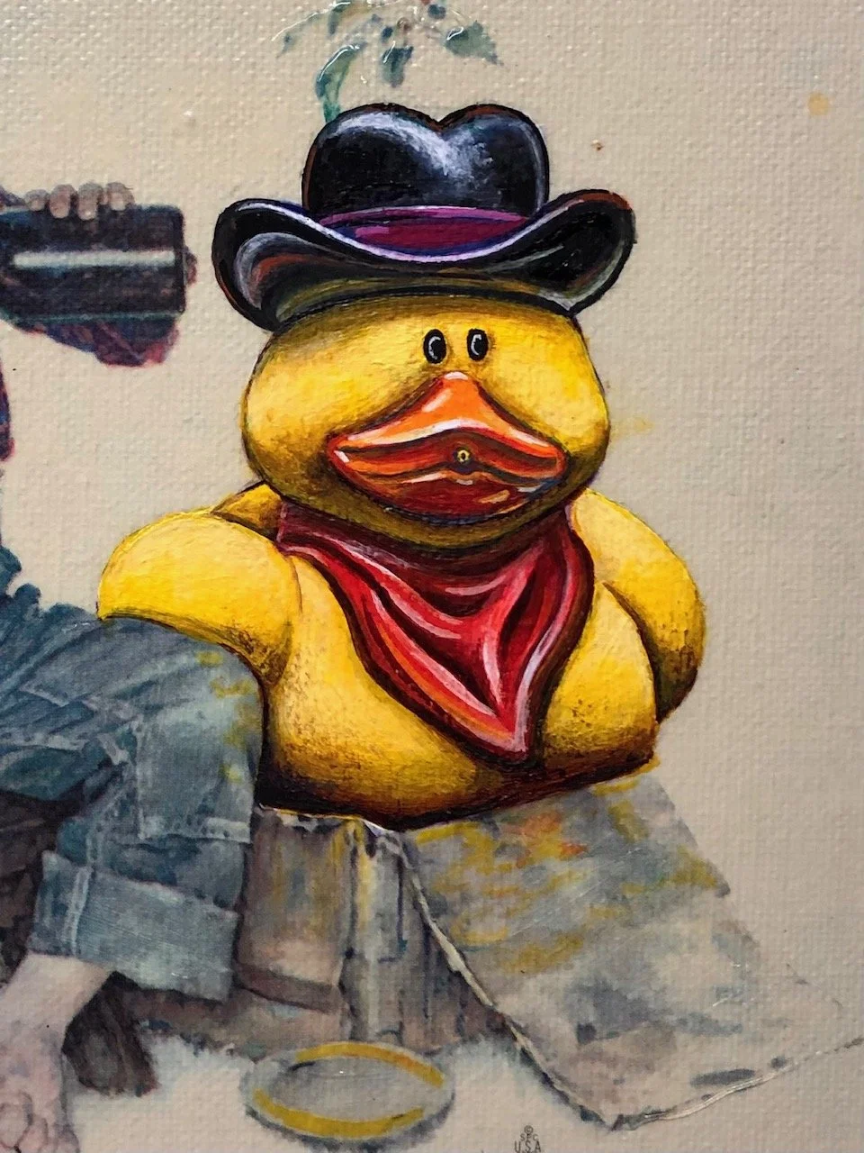 Finished painting - Rubber duck with a boy pouring medicine into a spoon by Norman Rockwell and Seamus Liam O’Brien.
