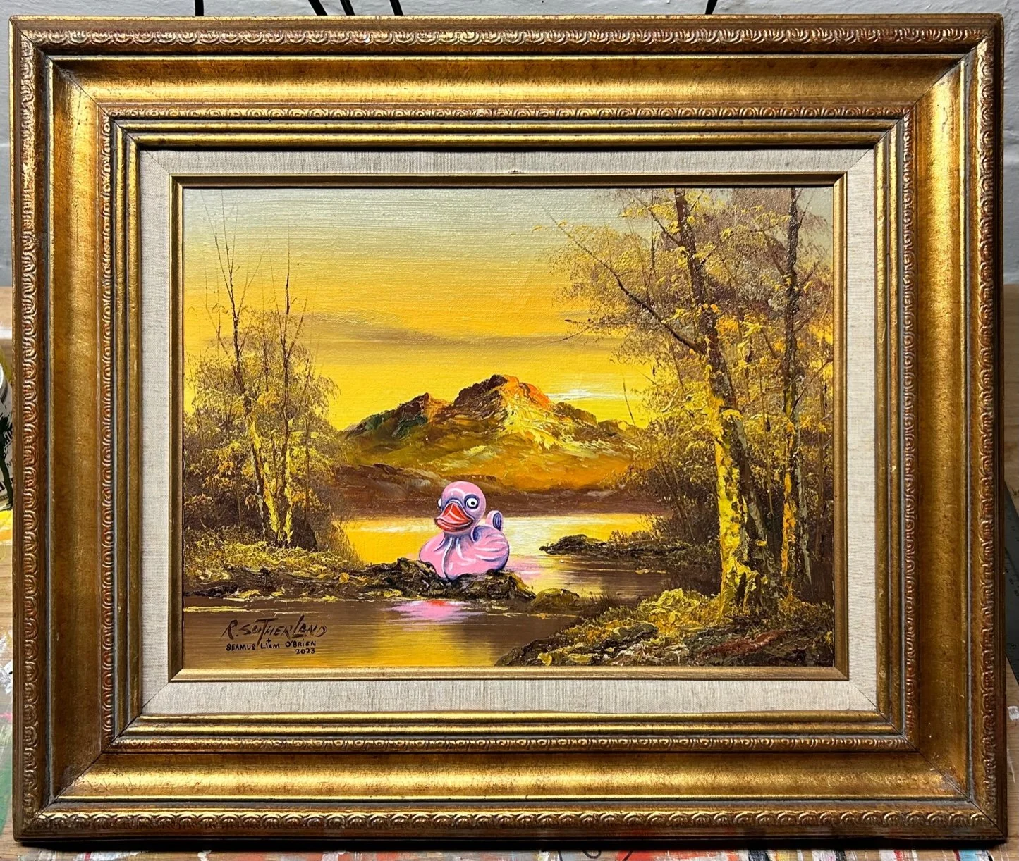 I painted a pink rubber duck on the painting and then returned this 'new' painting back to the same thrift store on 02/05/2023, around 11:10am.