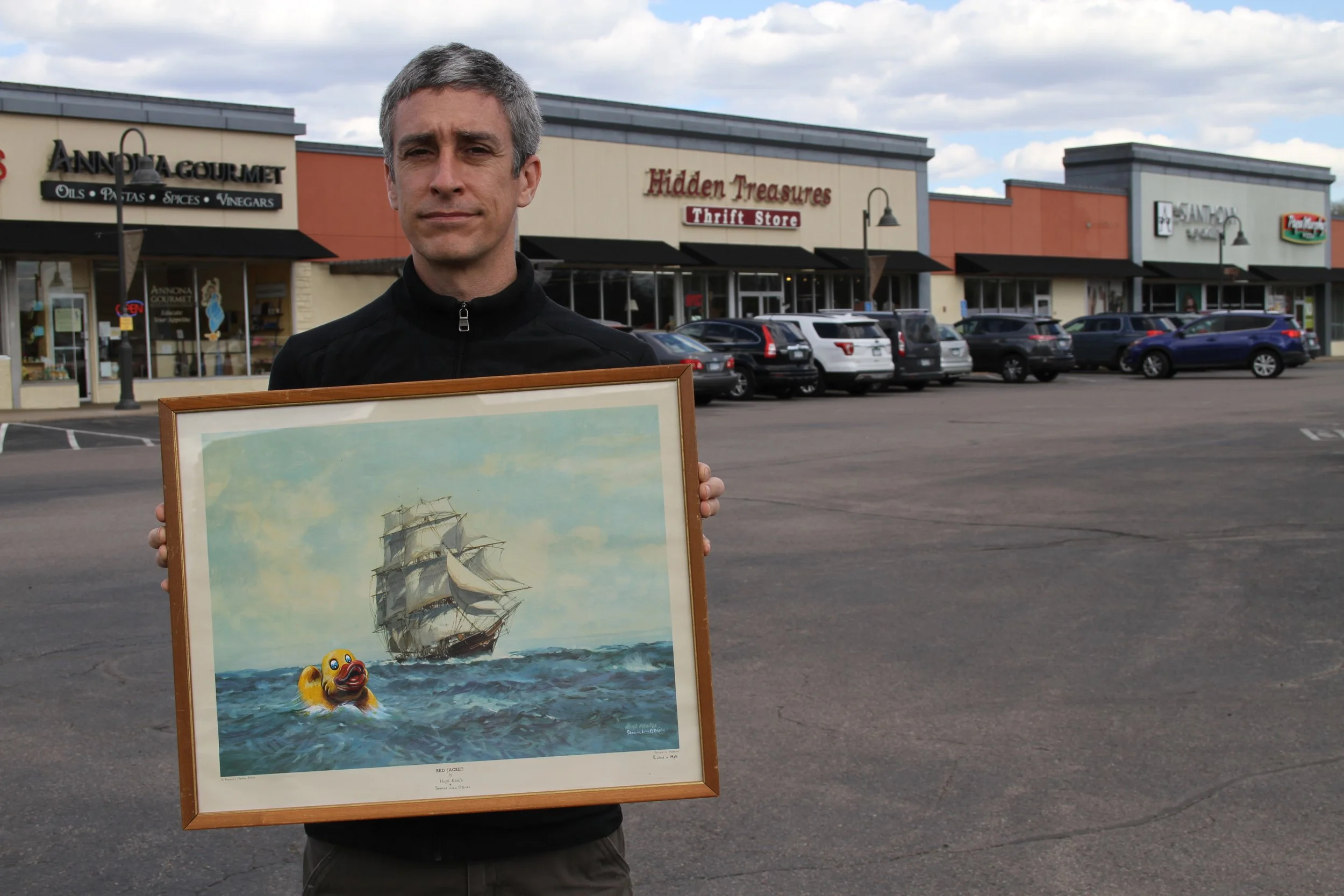 I painted a yellow rubber duck on the piece, signed it, and then returned this ‘new’ painting back to Hidden Treasures Thrift Store on April 17, 2021, 4:30pm.